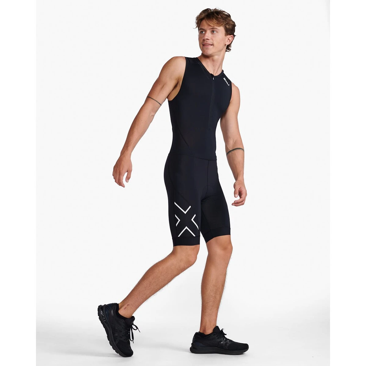 • Short, sleeveless men’s trisuit for triathlon competitions