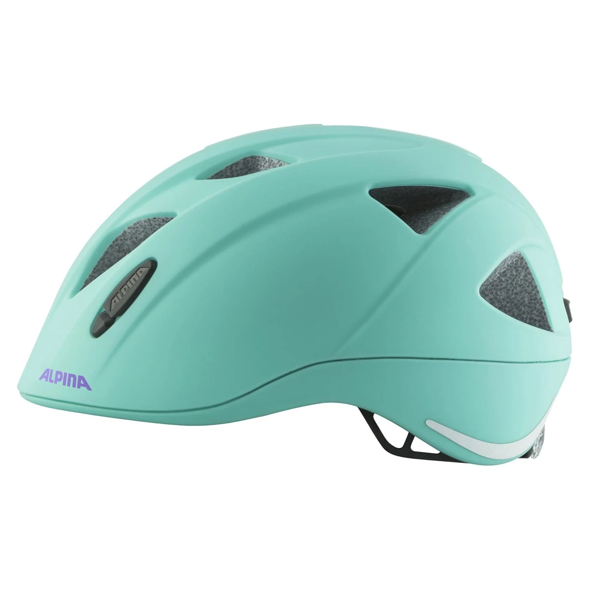 The XIMO L.E. children’s helmet from ALPINA – great protection for small heads. This kids’ helmet comes with a particularly low rear section to offer good protection for little athletes. 12 vents provide good comfort. Thanks to a flat rear section, this cycle helmet is also perfect for use in a child seat or child bike trailer. You can also optionally equip the helmet with a separately available LED, for better visibility in traffic.