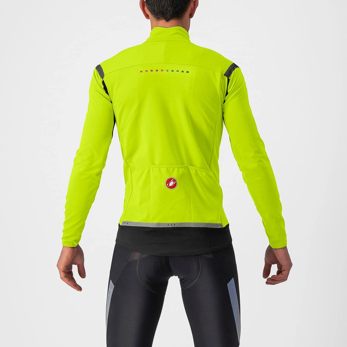 With the CASTELLI PERFETTO RoS 2 Jacket GORE TEX INFINIUM Soft Shell, the sun can shine or rain can fall from the sky, because it ensures that you can enjoy your ride in wind and weather. The brushed, water-repellent GORE-TEX INFINIUM WINDSTOPPER fabric on the front keeps you nice and warm, protected from precipitation. Thanks to the ventilation openings on the sides, you can also use the zips to get some fresh air.