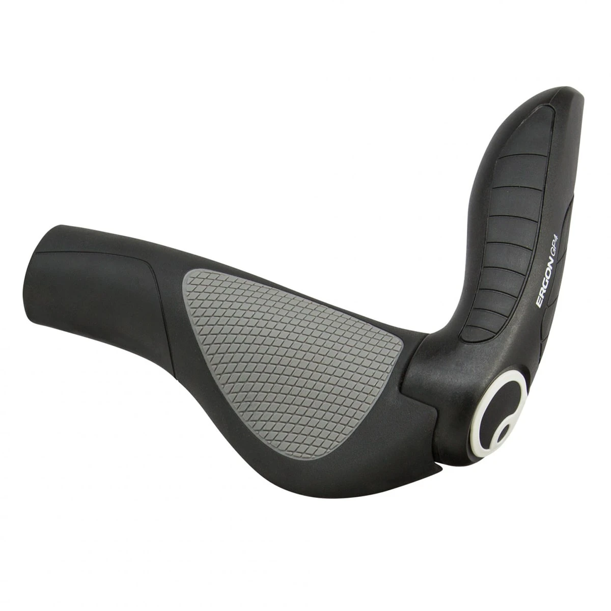 The Ergon GP4 is a grip with full size bar end, which considerably relieves your hands, thanks to its hand-fitting 3D shape. The ergonomically shaped 3D grip supports a correct hand posture, takes away pressure from your wrists and moreover, comes with three different anti-slip zones, which make changing your hand position even more comfortable. The full size bar ends are made from robust GF composite. Their angle can be infinitely adjusted to prevent pain in the hands. The Ergon GP4 comes with an easy-to-install aluminium clamping mechanism.