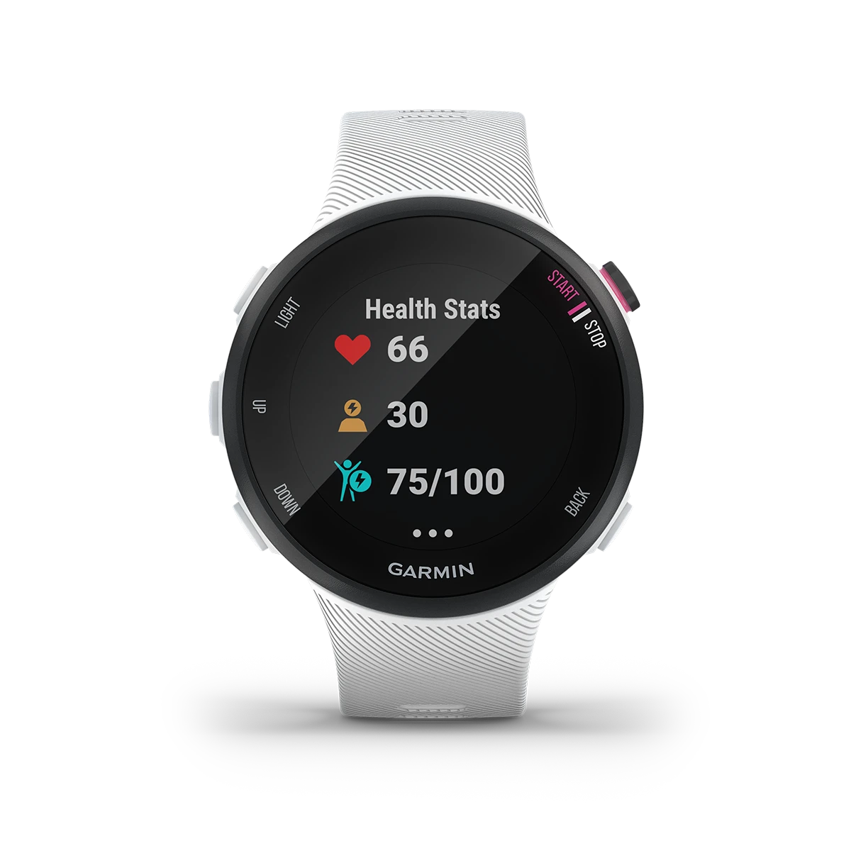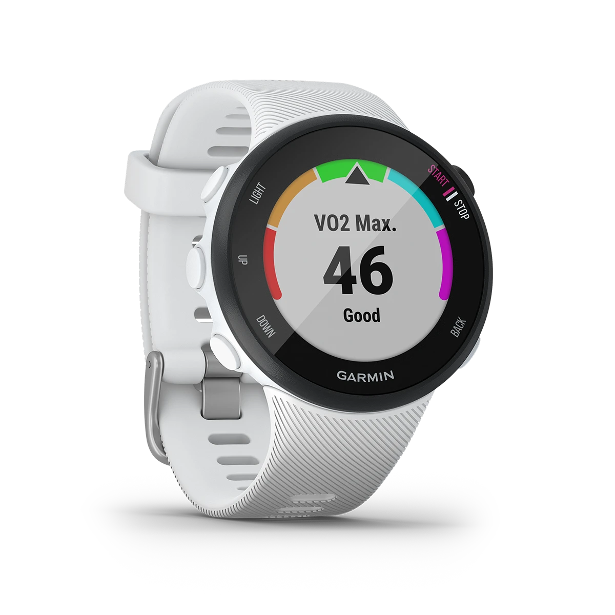 Moreover, even though the Forerunner 45 /45S is an entry-level model, it offers many extra features, such as GPS, GLONASS and Galileo compatibility, a 24/7 activity tracker incl. sleep monitoring, as well as smartwatch features such as smart notifications and weather data from the smartphone and even automatic emergency messages.