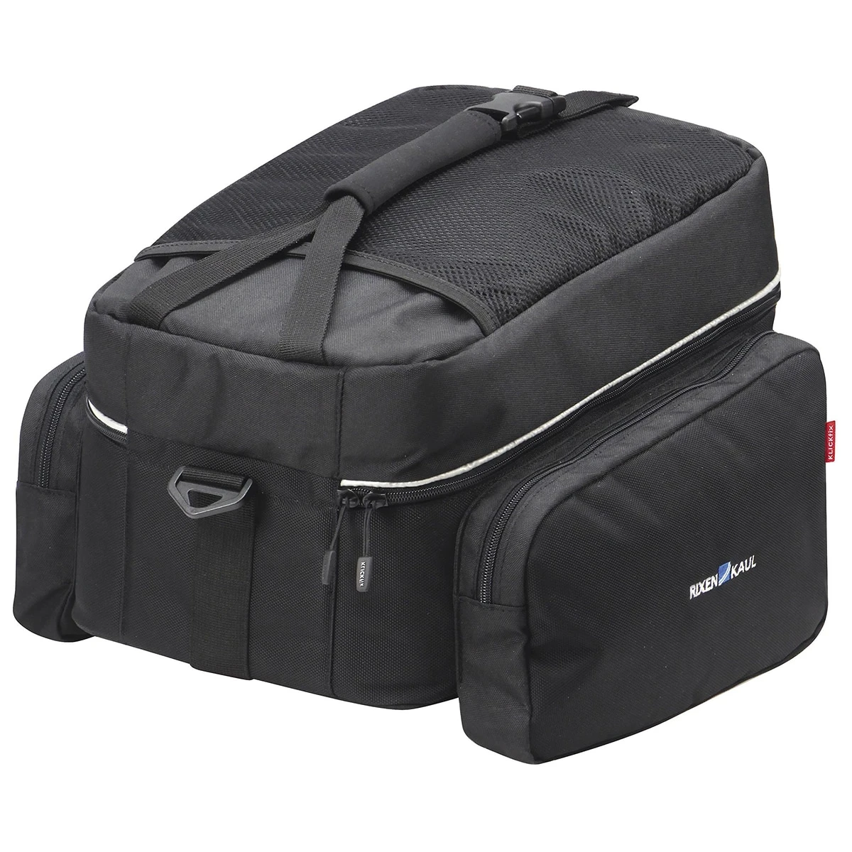 The Rackpack Touring Racktime rack bag by Rixen & Kaul has a volume of 20 litres and thus offers enough stowage for bike holidays and weekend trips. A separate mesh compartment on top of the lid allows for easy transport of clothes and small parts. Compatible with racktime racks!