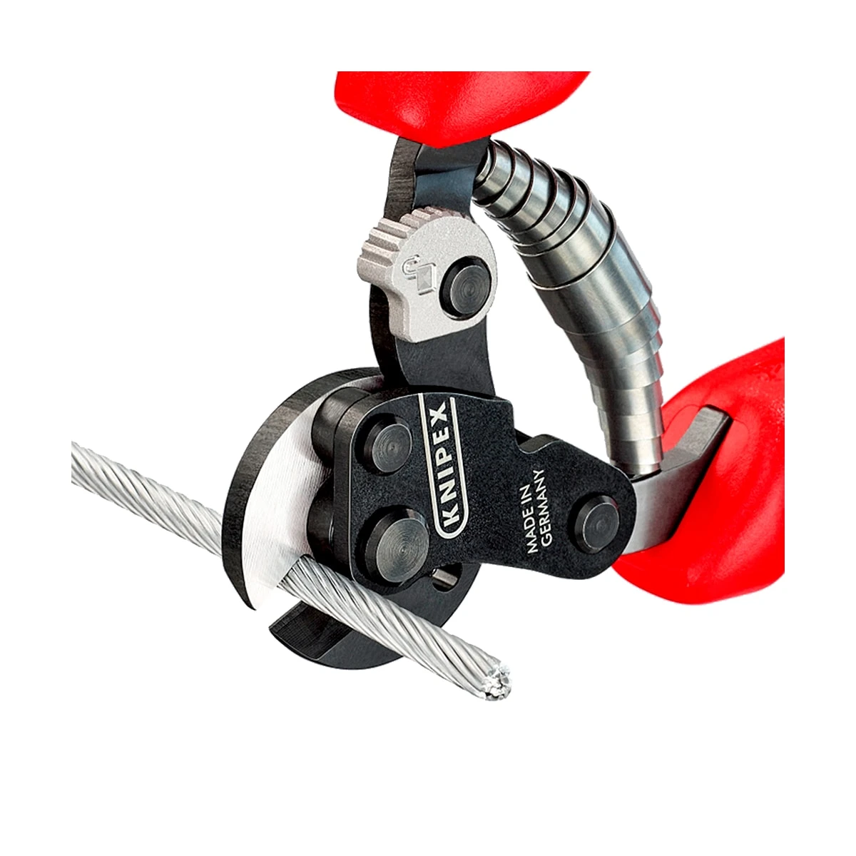 The compact, lightweight, high-strength wire rope cutter by Knipex even easily cuts through high-strength wire ropes of up to 4 mm. When used in your bicycle workshop, the high-end cable cutter promises precisely cut inner and outer gear and brake cables. Precision cut edges ensure low-friction cable movement for improved shifting and braking performance.