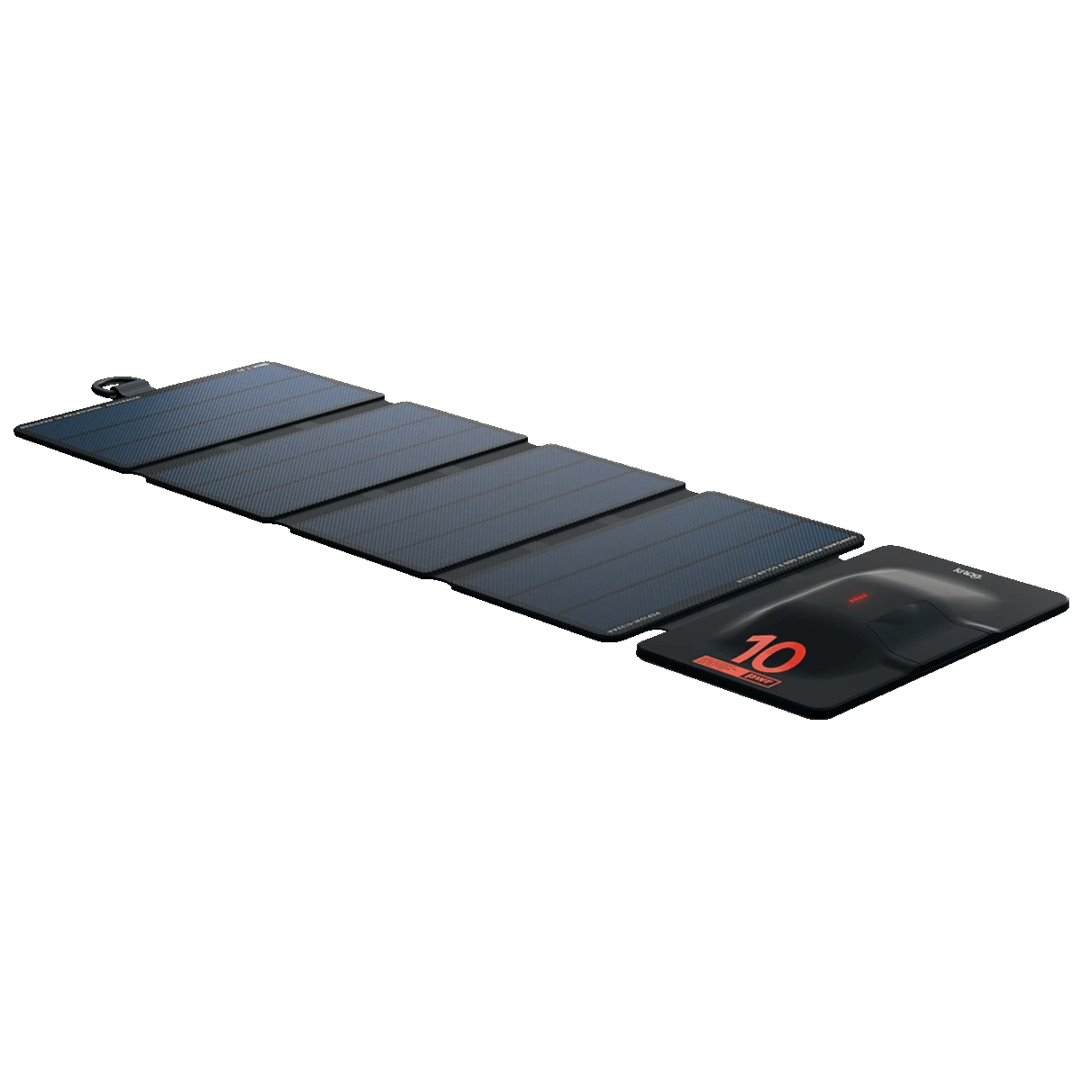• Small pack size yet high efficiency thanks to 4 folding solar panels