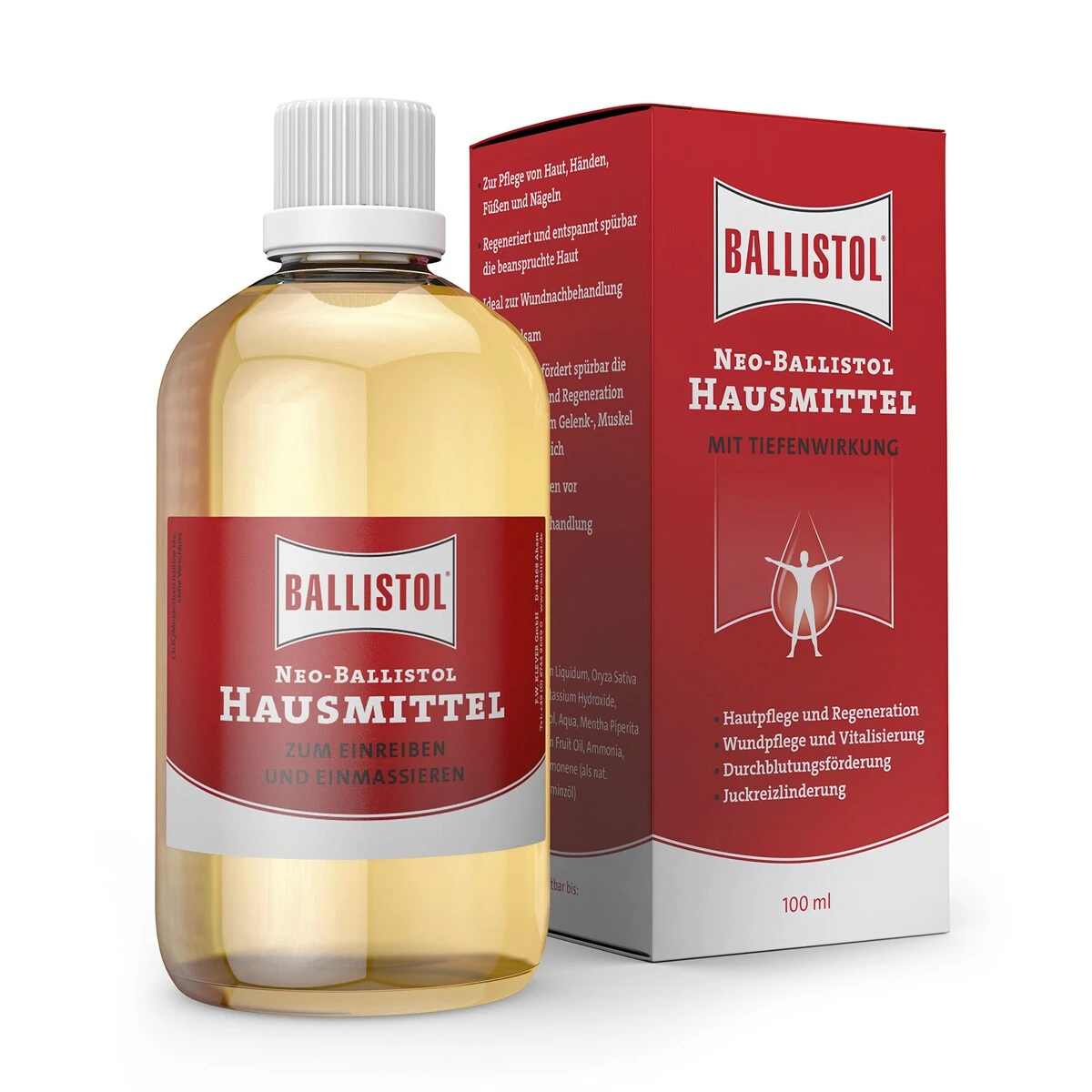 Neo Ballistol home remedy with essential oils is proven as massage oil as well as for skin care and wound care. It consists of time-proven and natural ingredients such as medically pure white mineral oil.