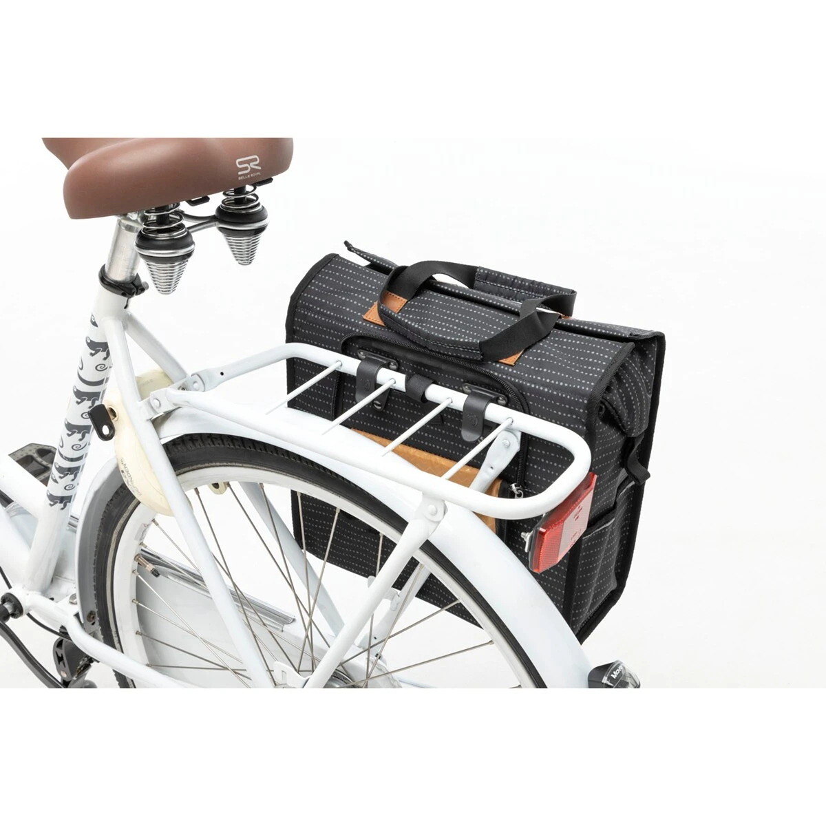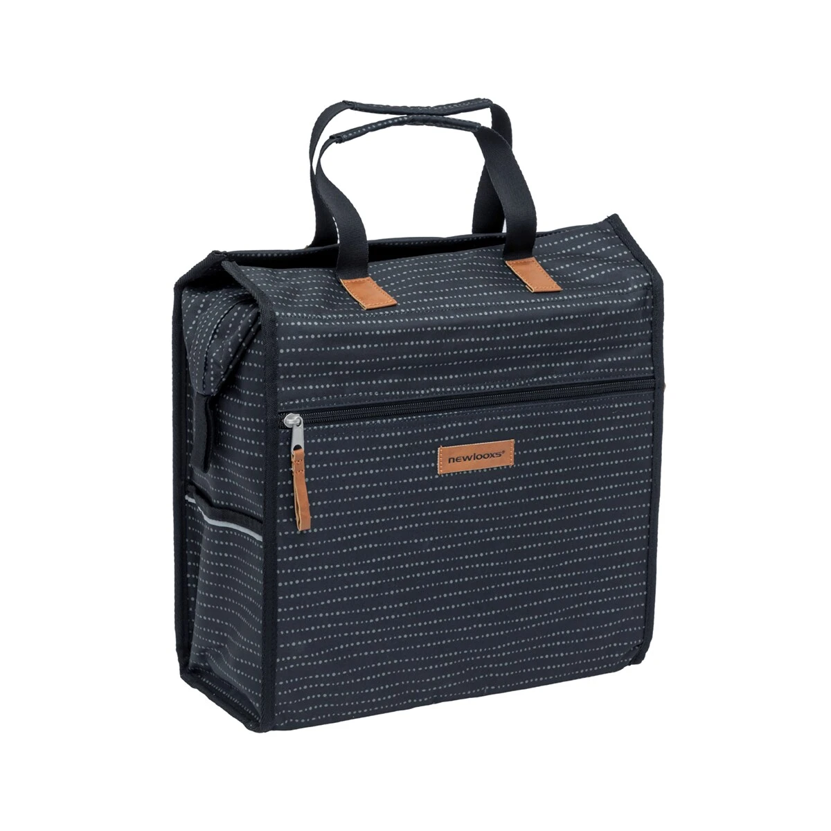 The LILLY NOMI is a handy shopper by New Looxs made from water-repellent polyester. The pannier has a spacious main compartment and three smaller front pockets to stow groceries or other items.