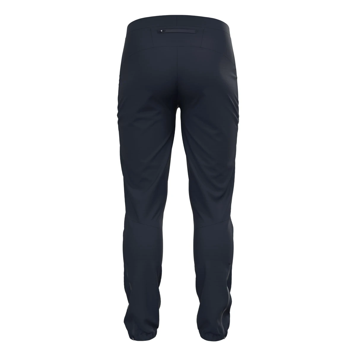 The windproof and water-repellent BRENSHOLMEN PANTS by Odlo not only offer excellent weather protection and effective moisture management, but also lots of functional details: Among other things, the trousers score with an elastic waistband with drawstring, zipped side pockets and silicone leg grippers. Lightweight, technical softshell bike pants that can do it all!