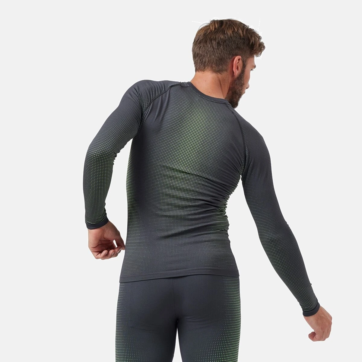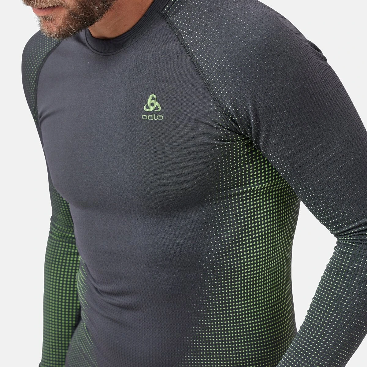The Performance Warm Eco BI Top Crew Neck L/S from Odlo is a versatile technical base layer for athletic activities. The insulating technical fabric wins over with a light protection against cold and high breathability.