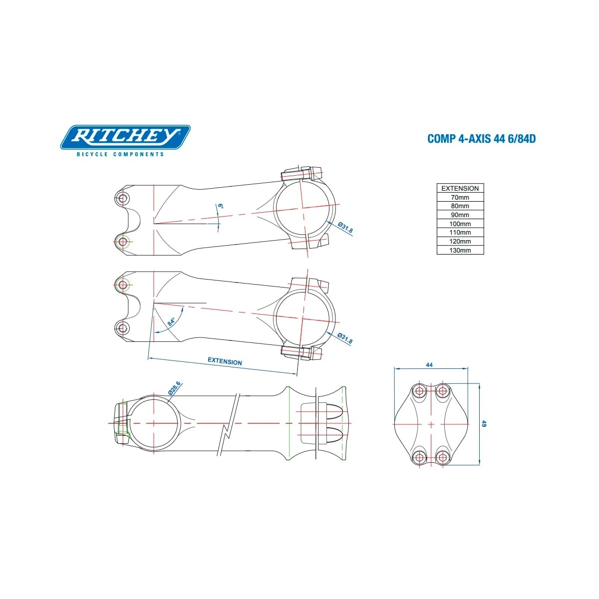 • 1x Ritchey Comp 4-Axis-44 Alu 84° stem