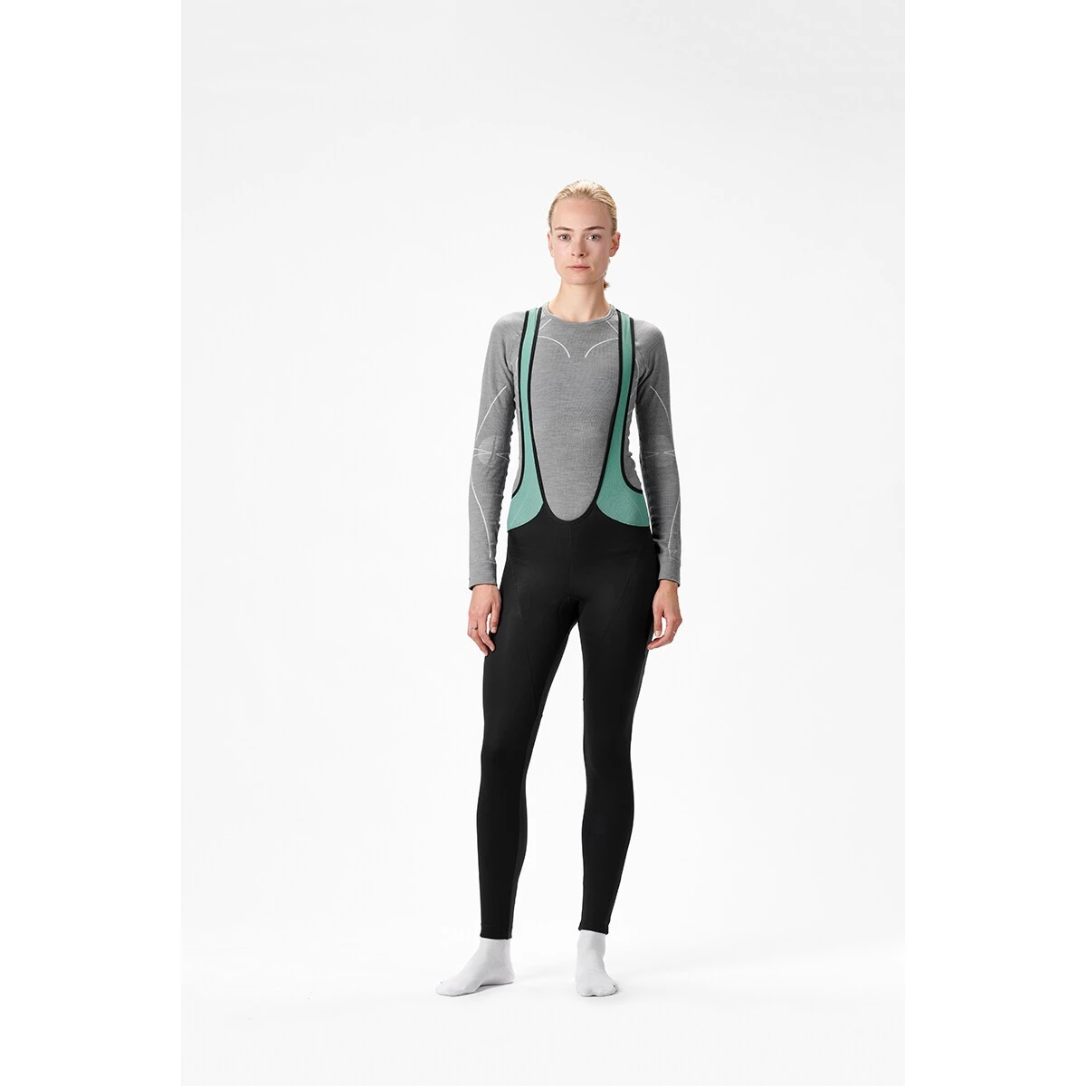 • Long, functional thermal bib tights for women with integrated Windstopper material along the entire front of the leg