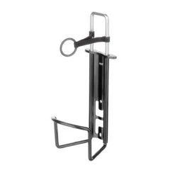 For optimal size adjustment to the bottle, the back part of the carrying frame can be pulled out and fixed with the sliding spreader clamp. The clamp also serves as a support for the PET bottle when the retaining rubber on the finger pull ring is stretched over the neck of the bottle. This can be done with a flick of the wrist and secures the bottle from falling out when you’re riding on rough routes.
