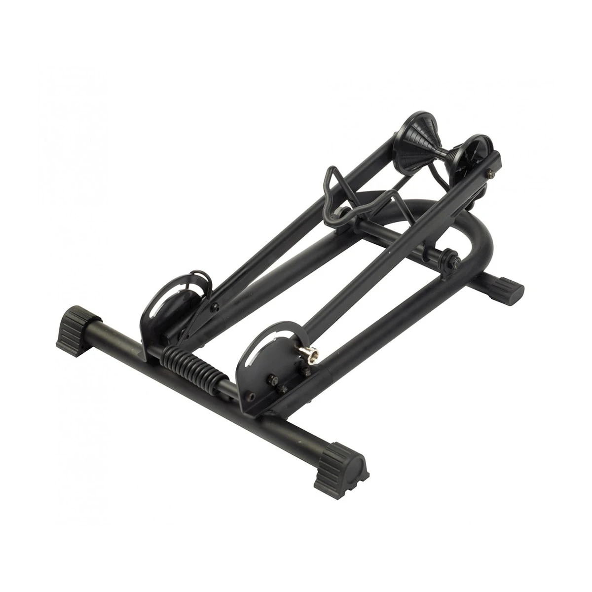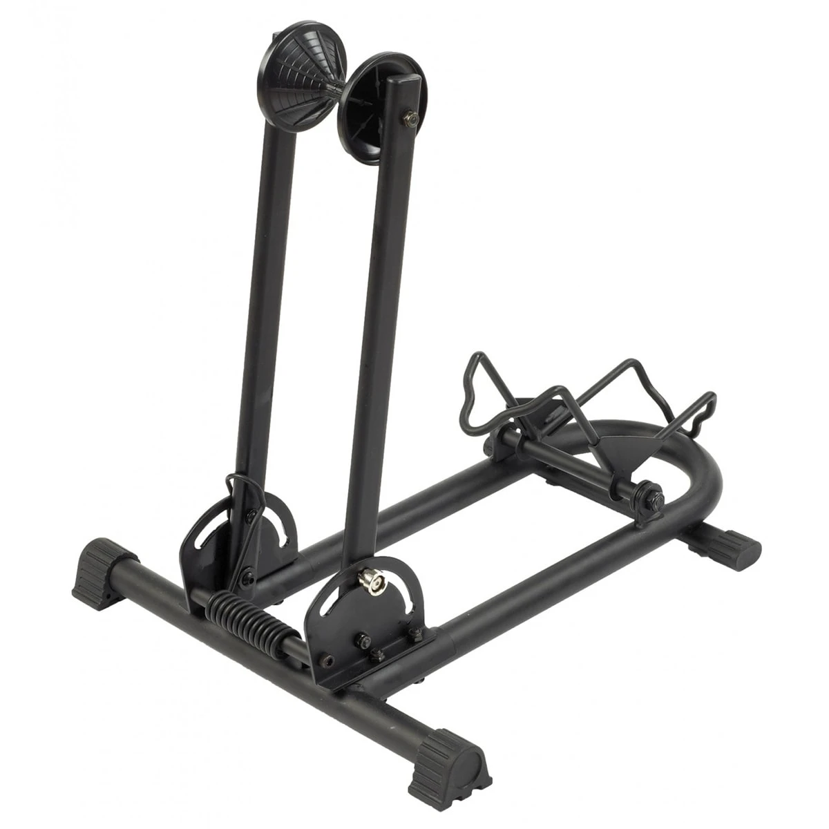 Well-designed, extremely robust bike stand that guarantees easy handling. Once you have unfolded it, you can roll a road bike, MTB or ATB onto its cradle, that can hold either the bike’s front or rear wheel. The holder arm with guide pulley moves into the position which is required by the wheel size and stabilises the bike with its springsupported mechanism.