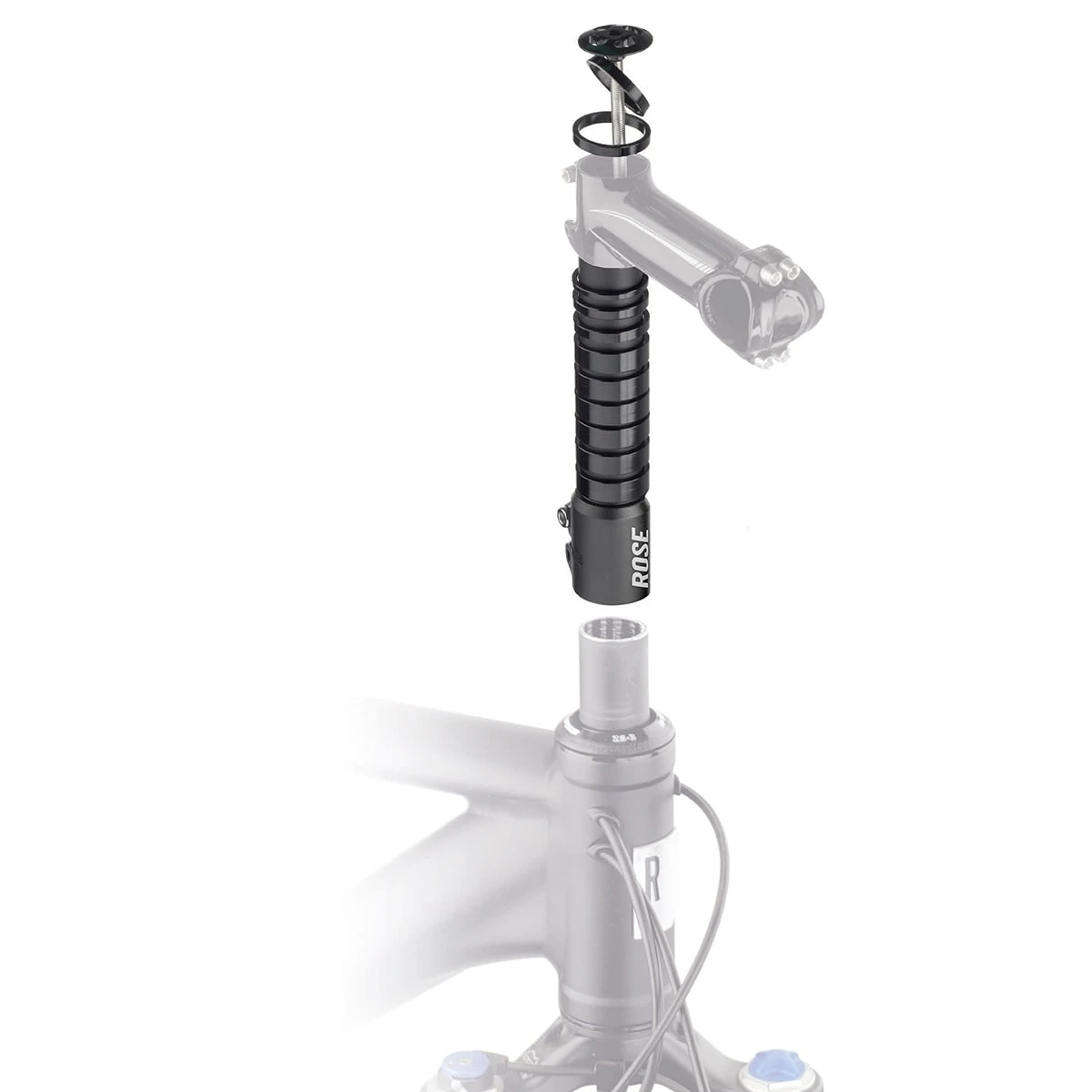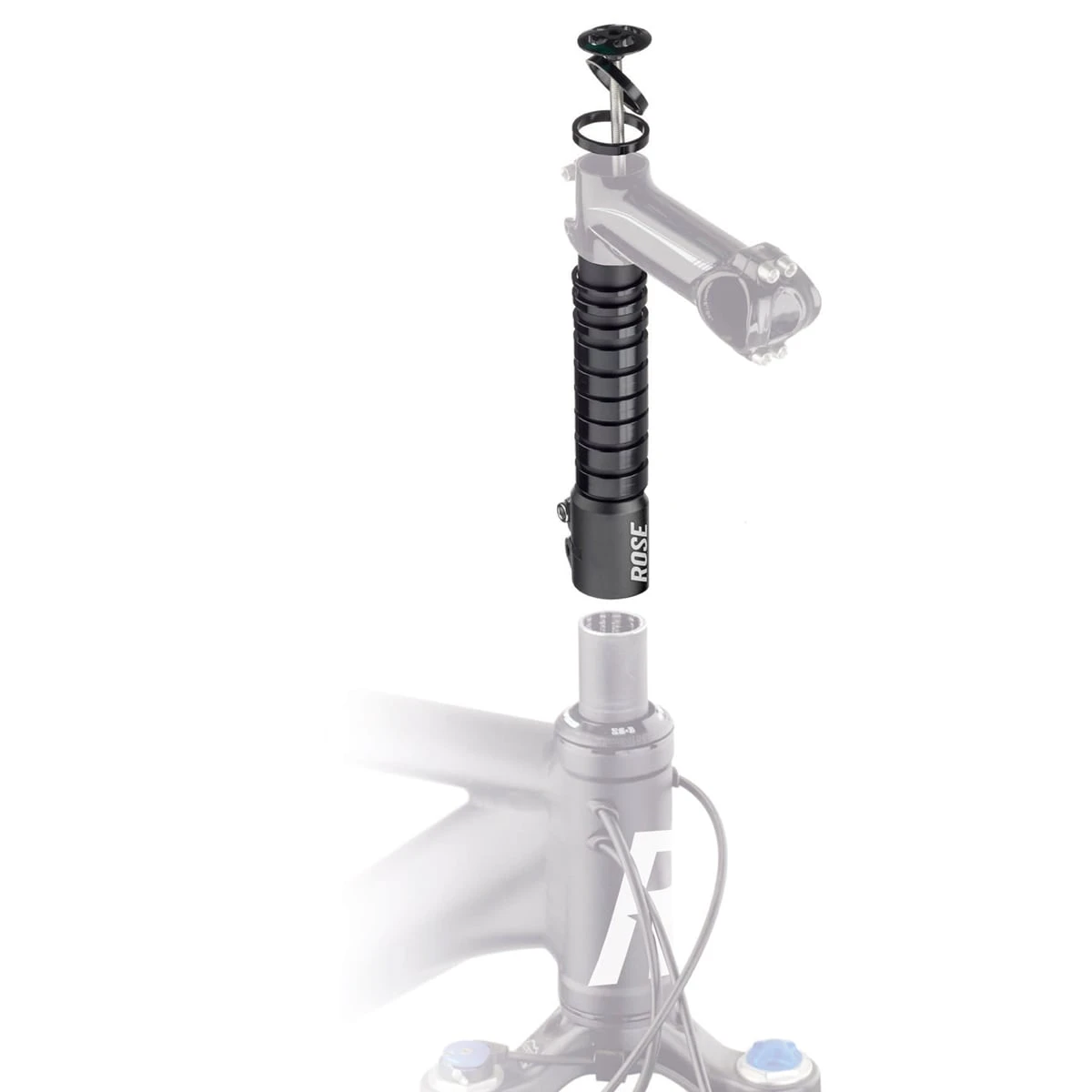 The ROSE steerer tube extender allows you to easily lift your handlebar/stem construction to the desired riding position. Thanks to the included spacers, the clamping height of the stem is variable.