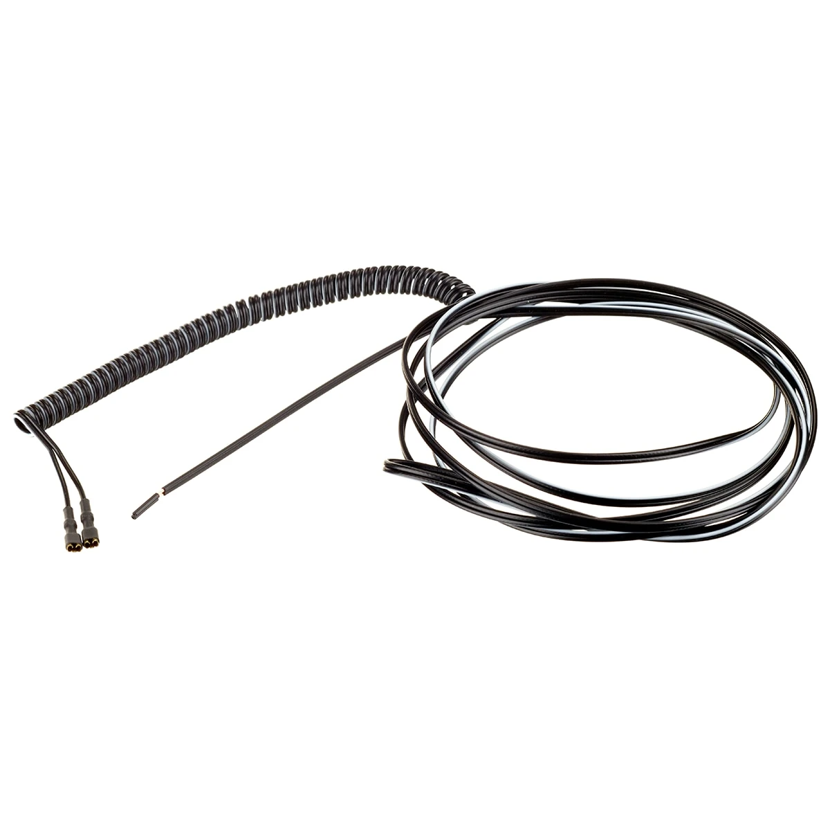 Twin-core cable. As the cable is coiled, it looks good before entering the frame and protects from cable breakage better than uncoiled lighting cables.