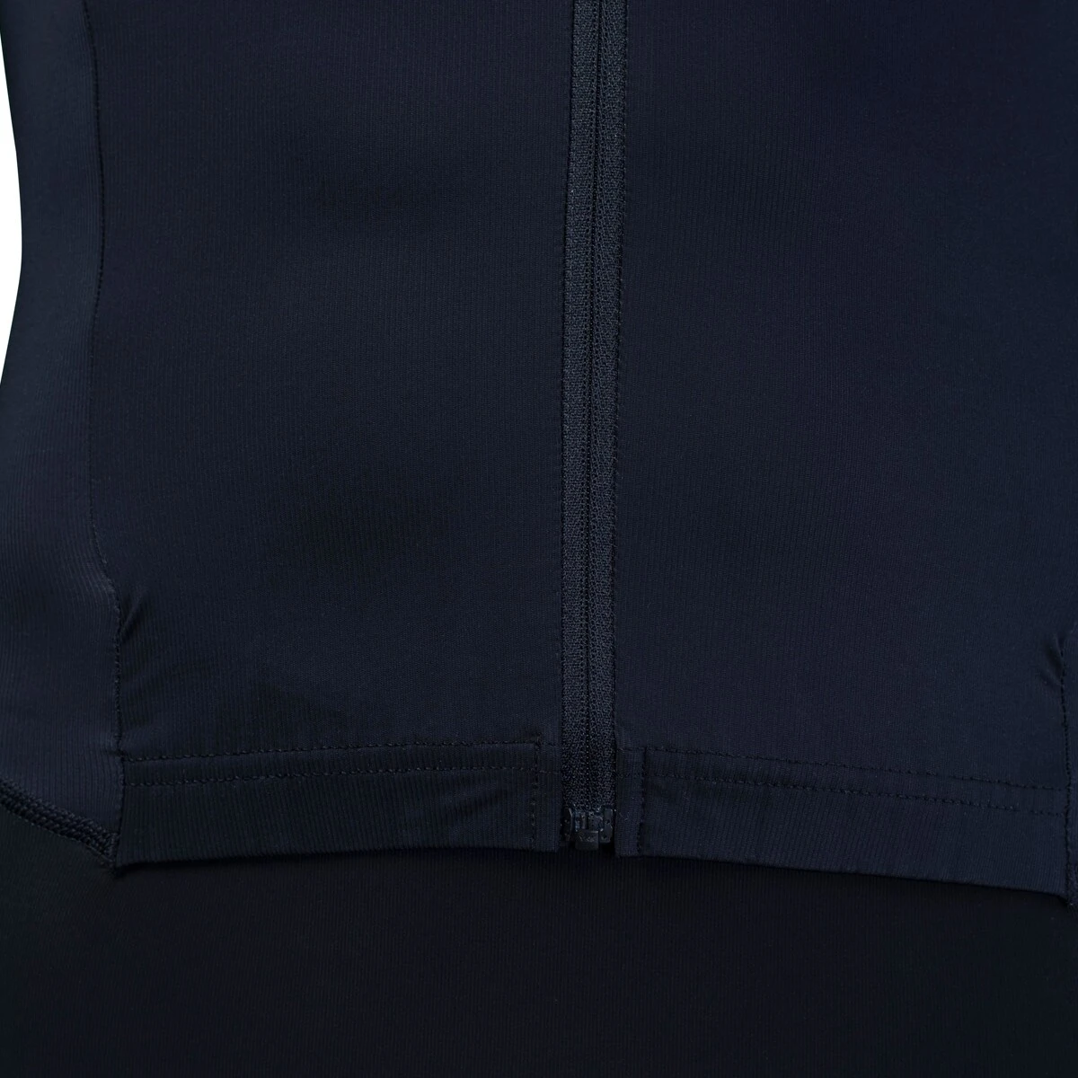• Full-length front zip with glued, wafer-thin underflap and zip garage
