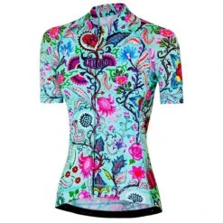 The SECRET GARDEN WOMEN’S CYCLING JERSEY by CYCOLOGY is a lightweight women’s cycling jersey that offers you both individual style and strong functional features. The 4-way stretch material of the close-fitting jersey ensures optimal freedom of movement. In addition, the fabric is pleasantly soft and provides high moisture transfer as well as fast drying. Three back pockets and a zip pocket are perfect for storing your essentials. With its eye-catching CYCOLOGY design, this cycling jersey is a real eye-catcher!