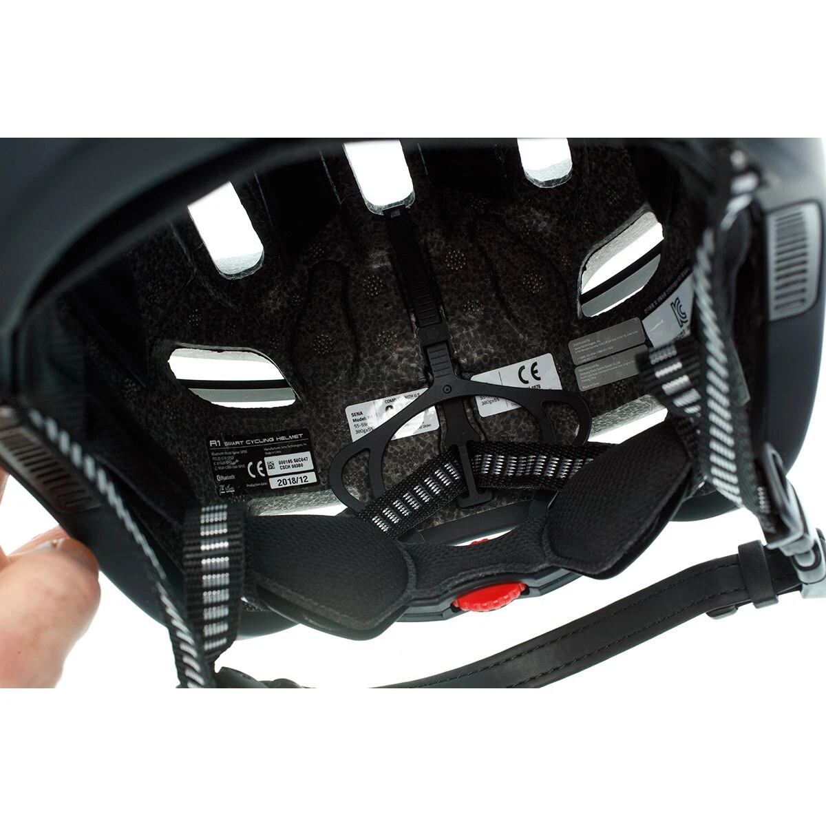 The R1 SMART helmet by SENA cleverly combines communication and safety. In addition to its polycarbonate shell with EPS liner, the cycling helmet stands out for its numerous communication and audio features. The R1 comes with Group Intercom™ radio link, allowing you to communicate with a group of up to four riders without mobile communications. Speakers above the ears provide a clear sound when listening to music, phone calls or Intercom™ talks. This design enables awareness of your surroundings. Moreover, the excellent Advanced Noise Control™ ensures a good voice quality even at high speeds.