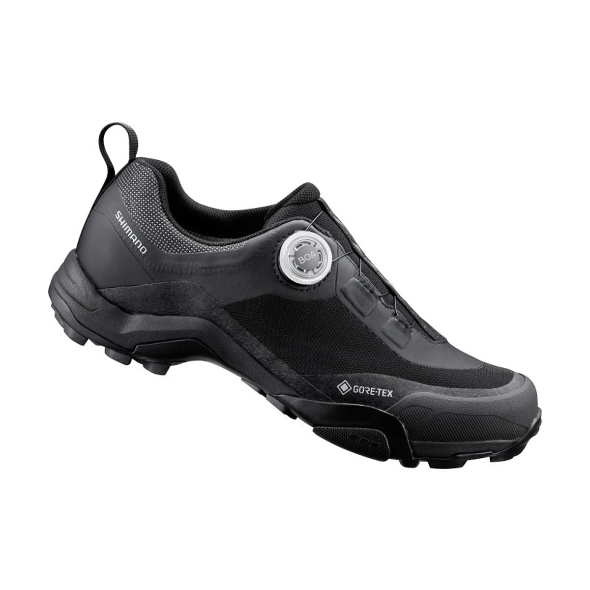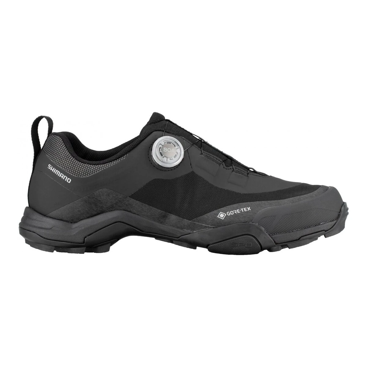 The SH-MT701 GTX MTB/Trekking shoes by SHIMANO are the perfect choice for mountain biking and cycle touring. The MT7 shoes allow for precise adjustments and offer a good grip on the pedal as well as during mid-ride café stops, thanks to a rubber sole. Plus, the integrated GORE-TEX membrane will keep your feet dry in wind and weather.