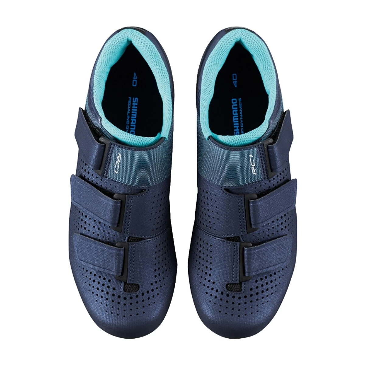 The SH-RC100 WOMAN road shoes from SHIMANO provide a good and comfortable fit. The nylon sole was reinforced with fibreglass, in order to provide even better power transference. The three large Velcro straps of the RC1 bike shoes ensure a reliable and secure hold while pedalling.