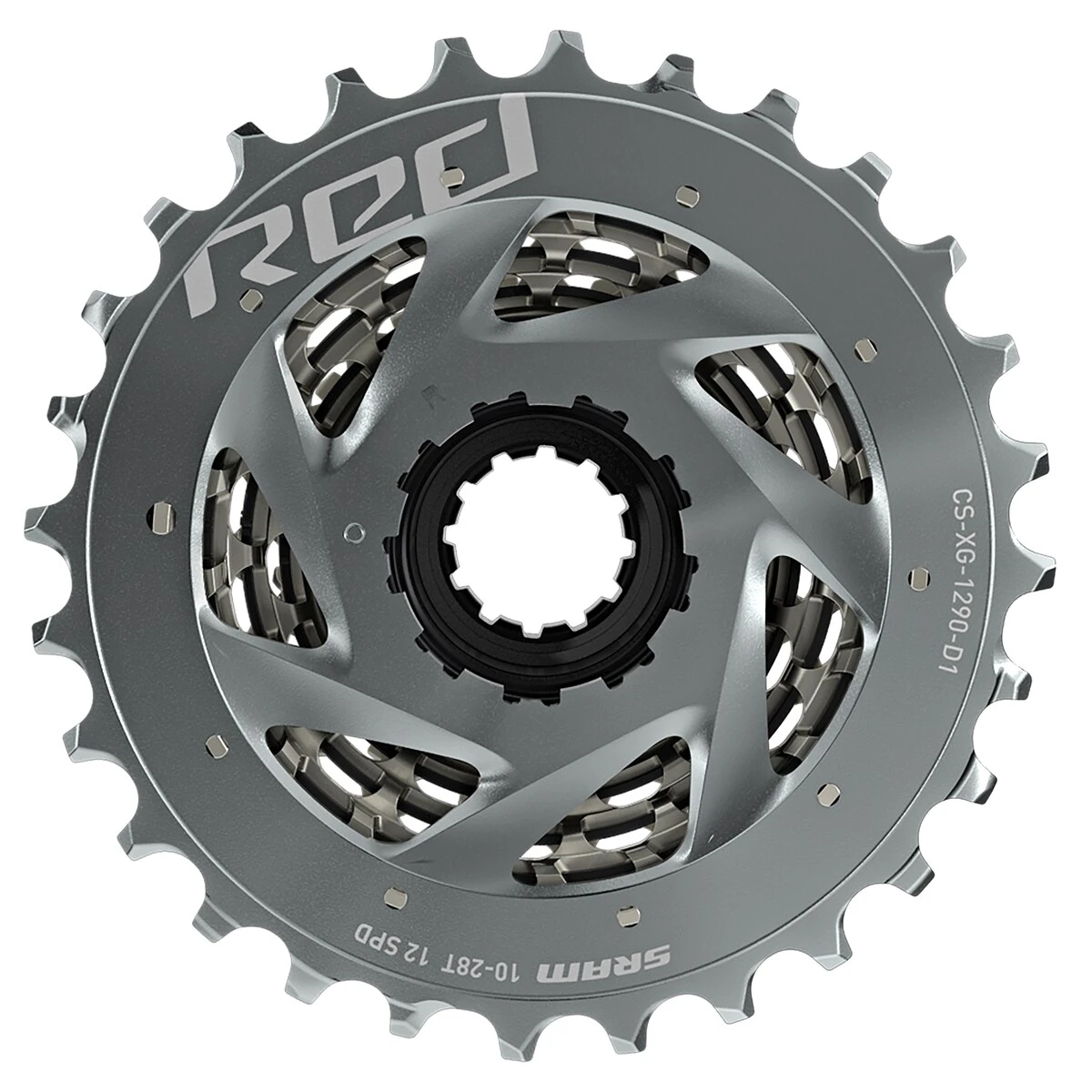 SRAM’s RED® XG-1290 cassette is definitely the top seller of the RED® eTap AXS™ 12-speed road groupset and an integral part of the X-Range™ technology. Specifically developed for wireless electronic shifting, it not only improves shifting performance thanks to a special ratio, but also provides a wider gear range. Each cassette comes with a small 10-tooth sprocket for high speeds and at least five closely spaced gears with single tooth jumps. Milled from a single block of steel thanks to the X-Dome™ design, it is a perfect example for a lightweight yet strong cassette with elegant looks.