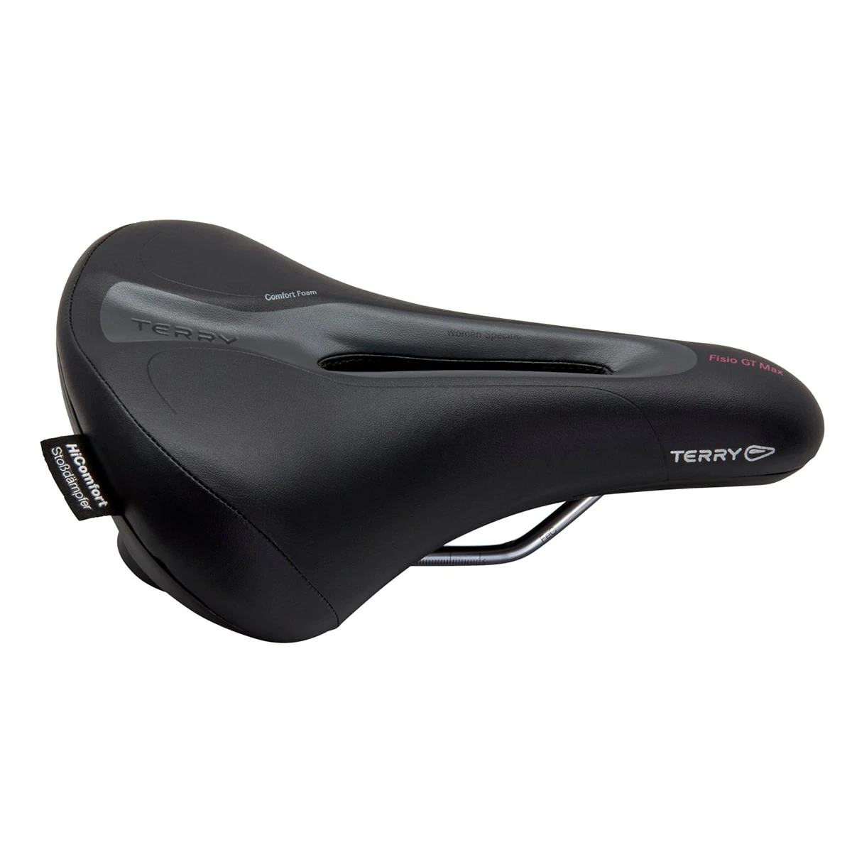 The Terry Fisio GT Max Woman Touring Comfort saddle comes with a 3 cm larger seat for increased riding comfort compared to the Fisio GT Women saddle (prod. code: 2203975). The Cellasto HiComfort damping system, that was developed in cooperation with the chemical concern BASF, ensures shock absorption similar to the one in cars. This makes riding in a slightly bent position even more comfortable on long tours.