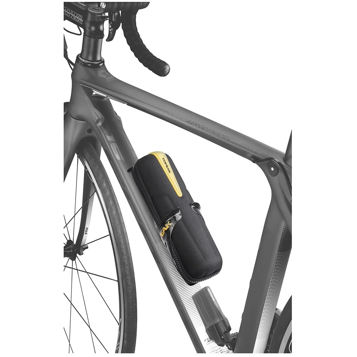 The CAGEPACK XL by TOPEAK is designed to be mounted in a bottle cage. Thanks to its volume and a detachable organizer, it offers sufficient space to stash mini pump, tyre-levers, tube, CO2 emergency kit and required tools.