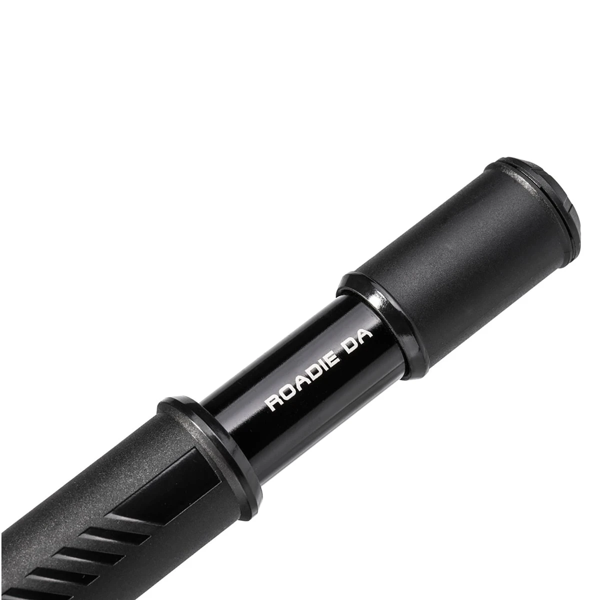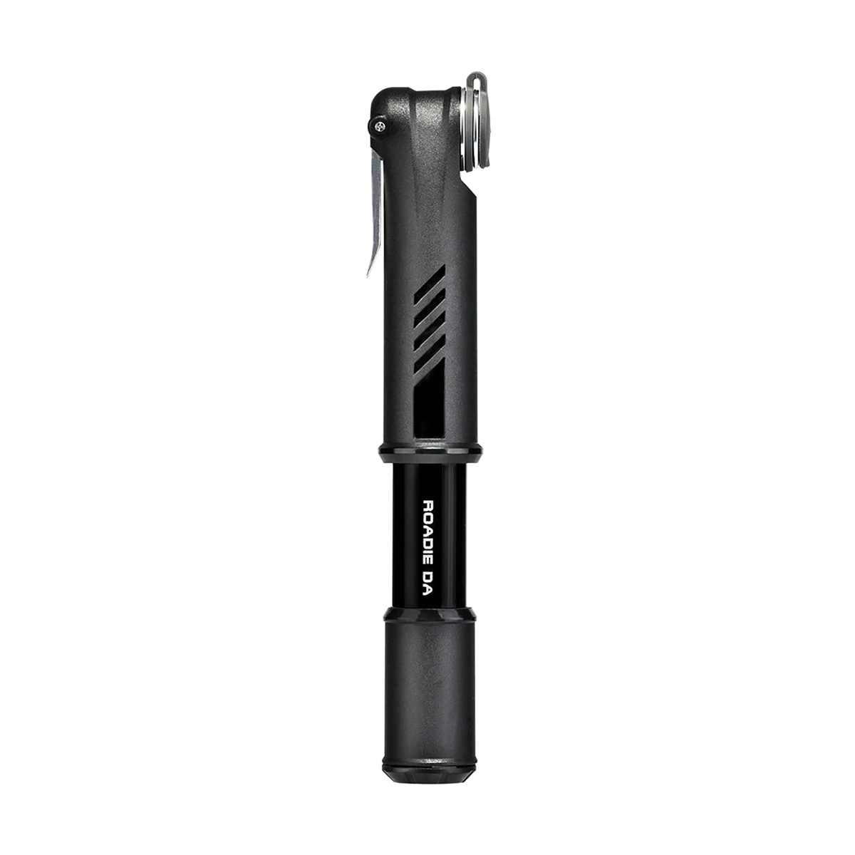 The Topeak Roadie DA mini pump is designed to meet the requirements of demanding road cyclists. The most compact and lightweight version in Topeak’s DA pump series easily fits in a jersey pocket. Thanks to the Dual-Action (DA) technology, it virtually reduces the number of strokes needed by a half. This is because the Dual-Action pump fills the tyre with both strokes, which saves time and effort. Thanks to the integrated dust cap, the pump head of the Topeak Roadie DA bicycle pump is well protected from dirt and a practical thumb lock ensures an air-tight seal to the valve.