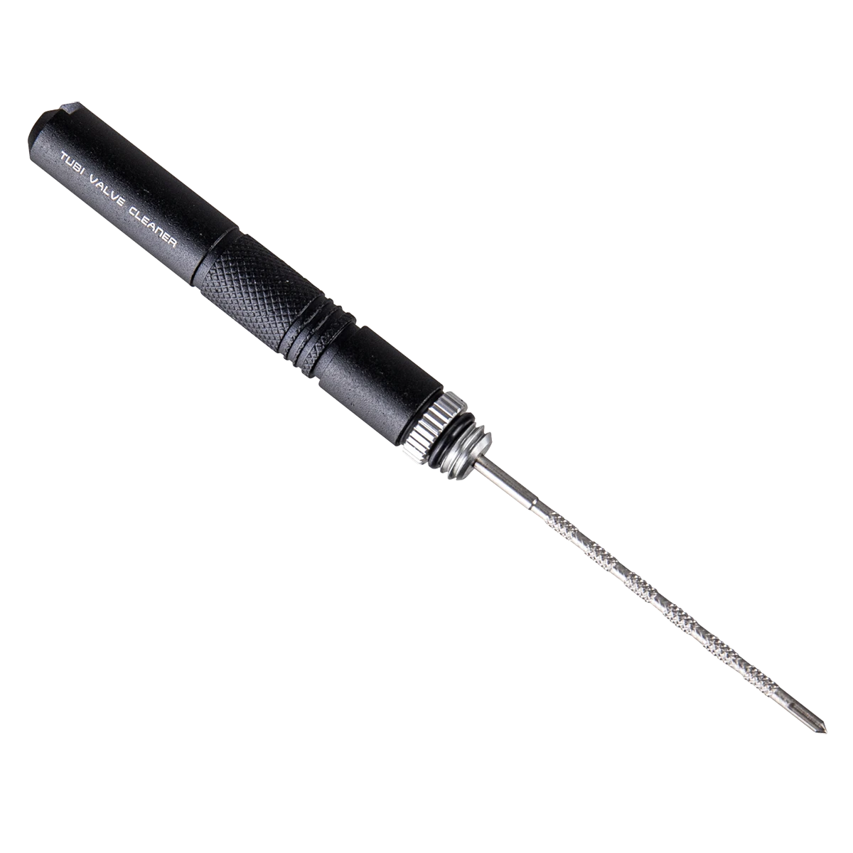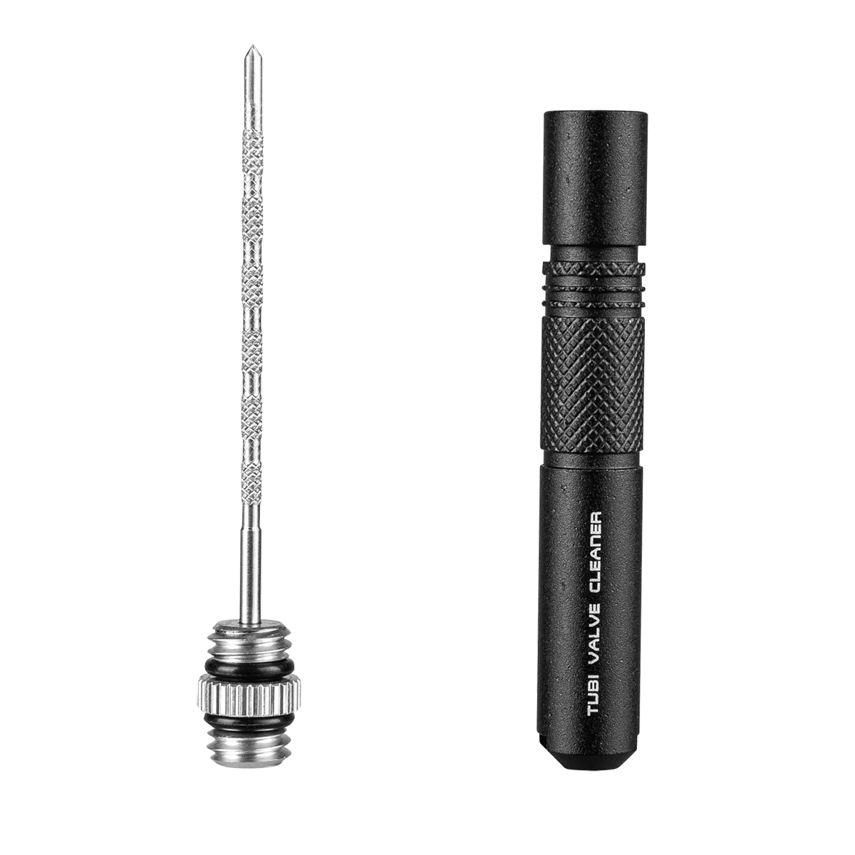 Valve stems clogged with sealant are no longer a problem with the Tubi Valve Cleaner from Topeak. With the profiled stainless steel pin, you can easily remove clumps and residues of the sealant. An integrated valve key is also available for loosening and tightening the Presta valve core. When put together, the little tool fits in every jersey pocket and the pin remains optimally protected.