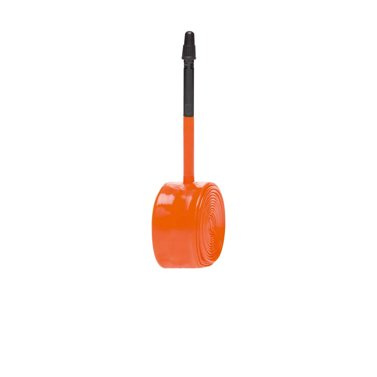 Minimum weight, double puncture protection, less rolling resistance: What sounds like a dream for road cyclists has long been a reality with the tubolito Tubo-Road-700C. A lightweight tube made of seamlessly welded thermoplastic that combines all the advantages of tubeless systems with the user-friendly handling of a bicycle tube. Around 70 grams less rotating mass than a standard tube, significantly less rolling resistance thanks to the smooth surface and twice the puncture resistance of butyl. This gives even convinced supporters of tubular systems unimagined possibilities for weight tuning in order to squeeze out those extra seconds in a race. The version with a black valve also preserves the simple understatement of your racer.