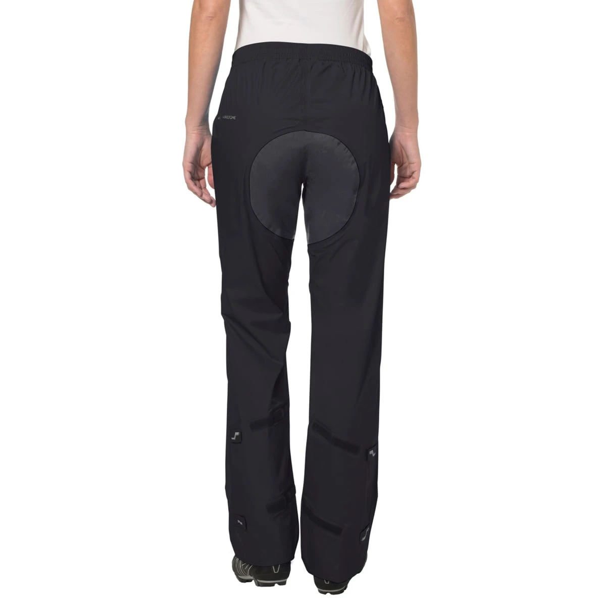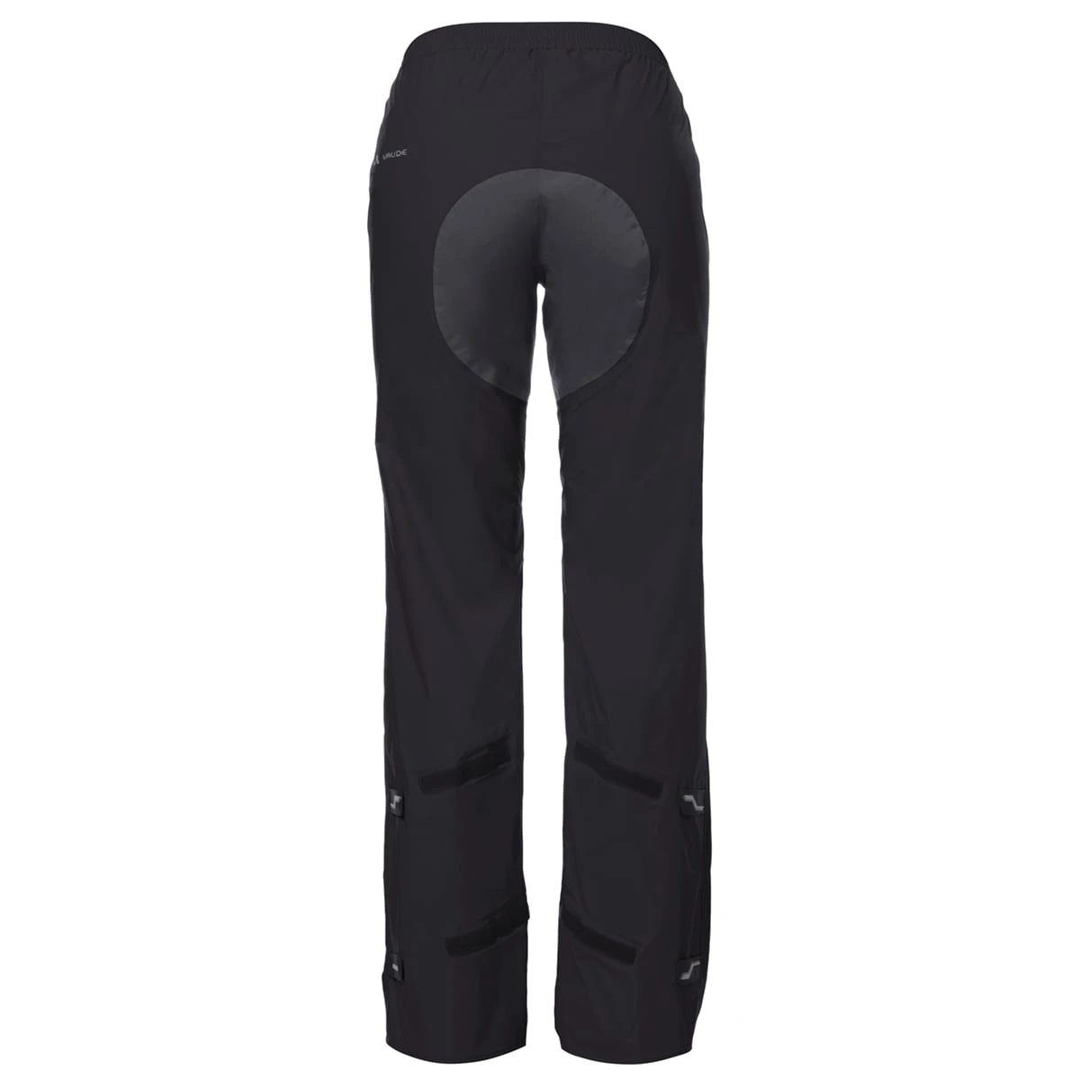 Let the rain fall! The WOMEN’S DROP PANTS II by VAUDE are absolutely wind- and waterproof. The reinforcements in the crotch and seat area provide additional protection. Thanks to its low weight and a small pack size, the waterproof trousers are easy to carry along, so that you’ll always have them ready at hand when the heavens open.