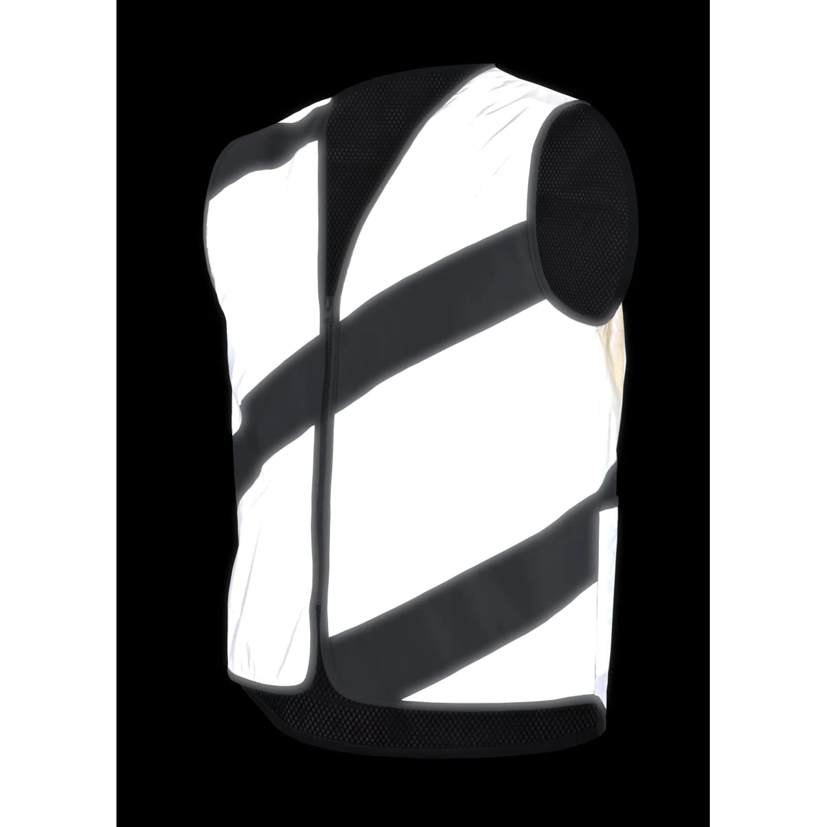 • Reflective, breathable vest with diagonal reflective strips on the front and back